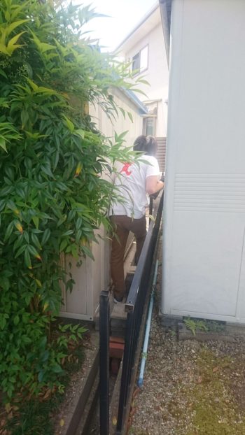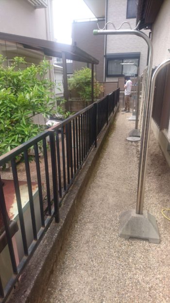 既存スチールフェンスを撤去・少し狭い部分作業大変でしたが、