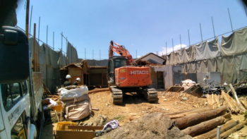先日来、耐震性その他のご不安もあり、某メーカーのプレハブにお建替えになる枚方市のM様邸解体工事、だいぶ進みました。