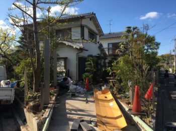 カーポートと跳ね上げ門扉の取り付け工事です。