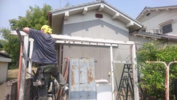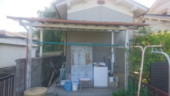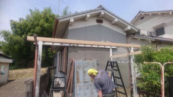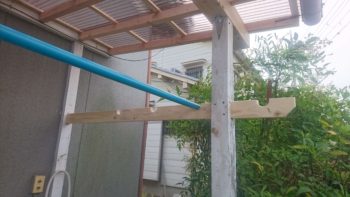 木製の垂木・梁が劣化しておりましたので、大工さんがんばって取替して頂きました。