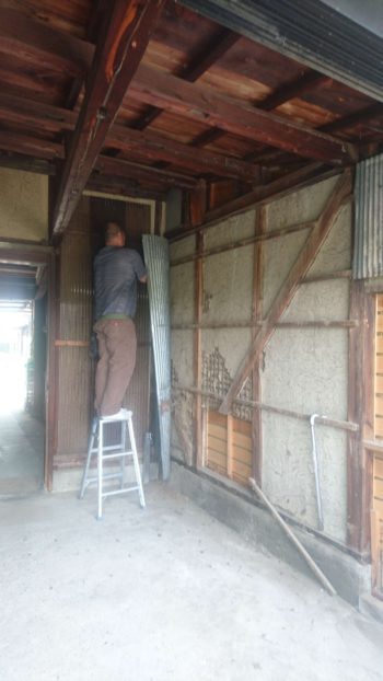 既存波ブリキを撤去して、ガルバ角波・ドア取付その他がんばって現場進めて行きます。