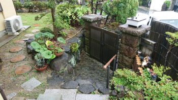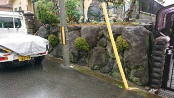 現地確認 電柱と大きな生駒石が有り少し困難ですがプラン作成いたします。