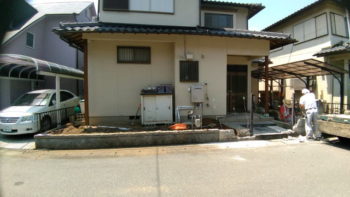 今月半ばから外構工事をさせていただいていますOB施主様の天理市M様邸、だいぶ工事も進行し終盤にかかってきました。