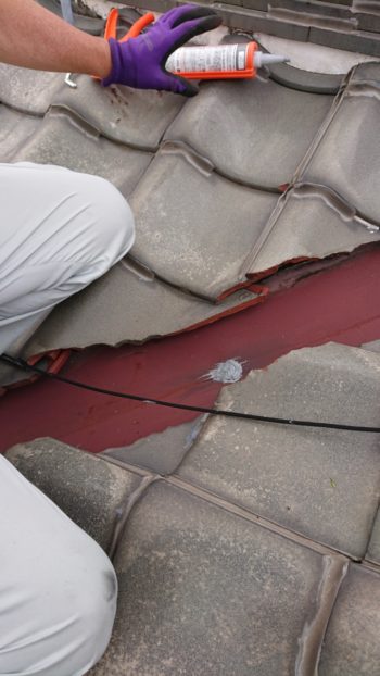 屋根の瓦と谷樋の点検、谷樋と怪しいところもシリコン打ちにて完了です。