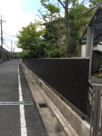 道路側にはみ出しているカイズカイブキを撤去してフェンスに取り替えました