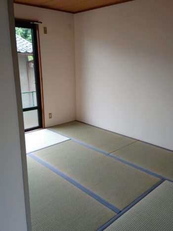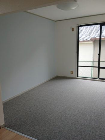 | 壁一部オーナーさんの希望の淡いブルーの壁紙に張り替えを行いました。 カーペットも少し厚みのあるガラに張替えいたしました。 |