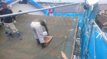 人数をかけて1日で無事 屋根解体(めくり)終了です。