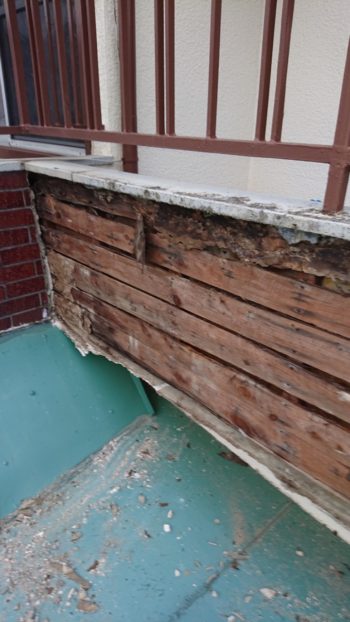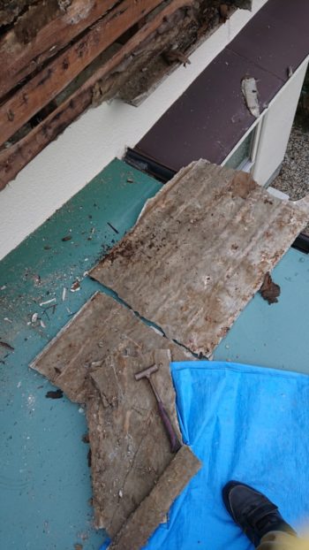 よる崩落です。下地木部もかなり水が回っていたみたいでフワフワ状態。