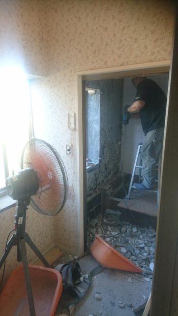 水廻り部分リノベーション 解体・配管・左官工事と進めています。