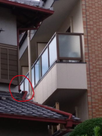 早速お伺いしてみると、竪樋の一部が抜けていました。