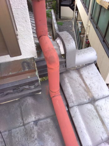 さて何度もリフォーム工事をご用命いただいている木津川市のK様から、大屋根から降りてきている雨樋が外れているので、台風前に見に来てほしいとお電話を頂きました。