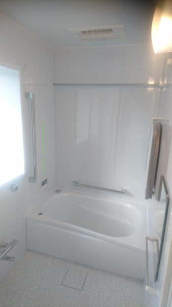 浴室(システムバス)だけ先に仕上げさせて頂きました。(清掃・チャック・試運転OK!)