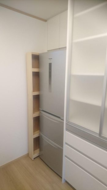 冷蔵庫横(空いたスペース)130も収納ボックス・キャスター付