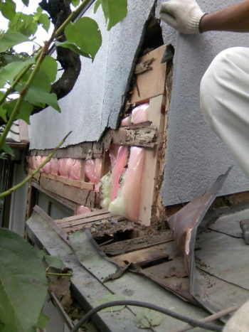 応接室上のベランダ取り合い部が、長年の雨漏りをしていて、角柱その他の構造材に結構な腐食部分が見つかりました。