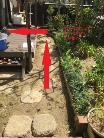 道路側の勝手口からスロープにして車椅子で