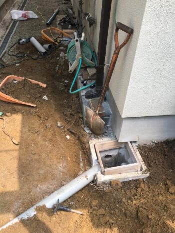 ウッドデッキの下になる樋の排水を会所へつなぎ