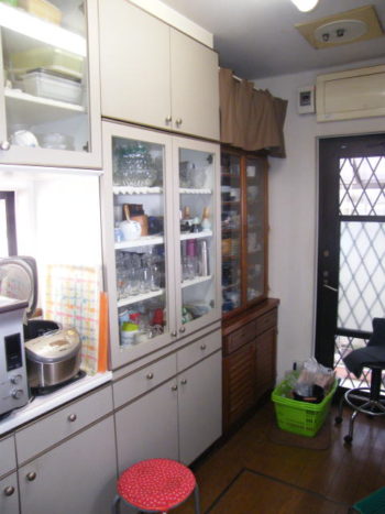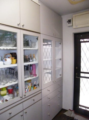 キッチンが新しくなり、今までお使いだった既製品の食器棚が木目調なので合わなくなり、ホワイトで機能も追加をして制作することになりました。