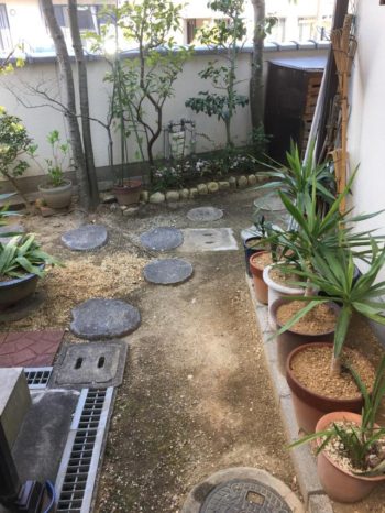 植木や雨水の会所など 邪魔ものがいっぱいあります。想像以上に道路から高く カーブになるので