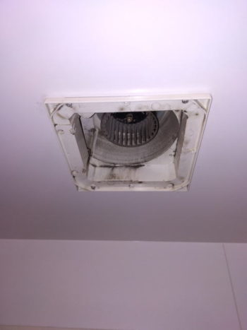 何度も工事のご依頼を頂いている奈良市のN様より、所有されている借家の浴室天井換気扇の不良の点検のご依頼を頂き早速拝見したところ、経年劣化による異音発生と判明しました。