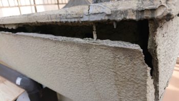 ベランダ手すり部より雨の侵入によるモルタルの亀裂