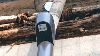 モルタルの劣化による柱部分より少しつづ雨が侵入です。