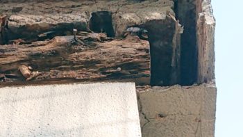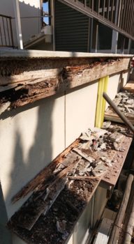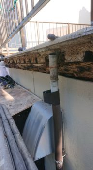 まずモルタル落としと腐食木材の撤去です。