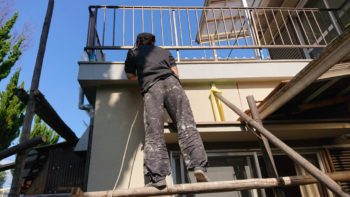 最終外部モルタル塗り部のローラー塗装工事となります。