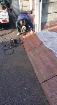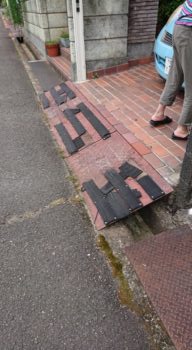 先月外構工事でお世話になりました I様よりご紹介で、隣の奈良県生駒郡のY様邸車の出し入れで入口の傾斜角度大きくスリップ止めの依頼です。