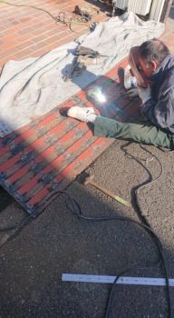 現状鉄板にてゴム止めでのスリップ止めが、ちぎれてしまい鉄板溶接でのスリップ止めを行いました。