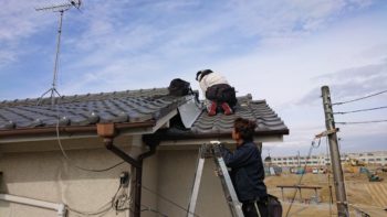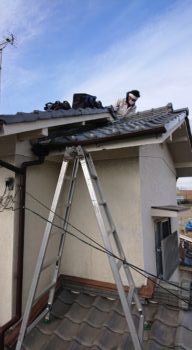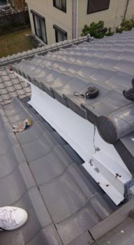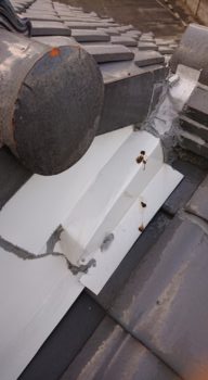 屋根のしっくい部分と瓦止めのカバー保護案での改修工事を行いました。