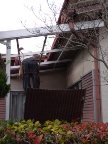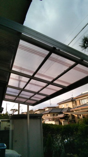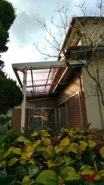 台所前とテラス2カ所の波板は、昔の塩ビ製グラスファイバー入りタイプのため、