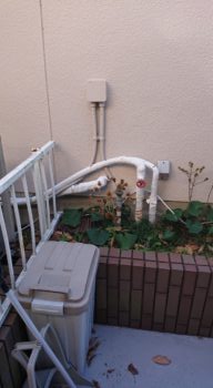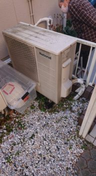 | 取替後 ヒートポンプ外向きに設置いたしました。 | 足元を強固に固めています。 | |