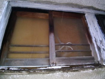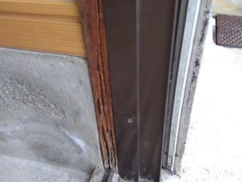 一軒は、玄関引き戸の柱にすでに食害跡がありました。
