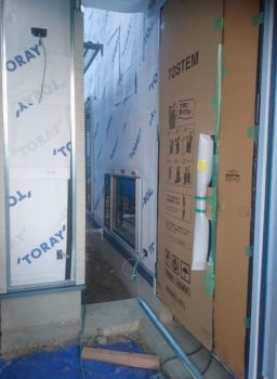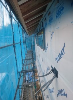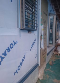 最初に水切り・透湿防水シート張りを進めて~各ダクト防水処理をします。