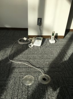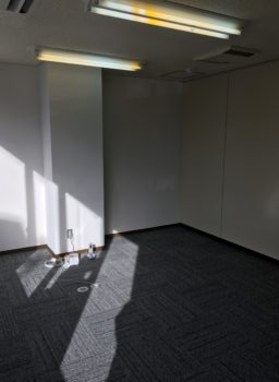 間仕切りのパーテーションと電話だけが置いてある殺風景な事務所に