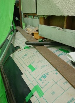既存幕板を取り外し雨侵入跡の確認、外部から見ても分からなかったのですが