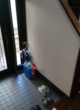 階段室 壁下地が薄いベニヤ合板にて後付け用補強板取付での