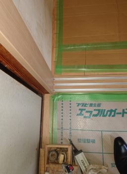 | 中段、枕棚取付 | 畳~床フローリング下地です。 | |
