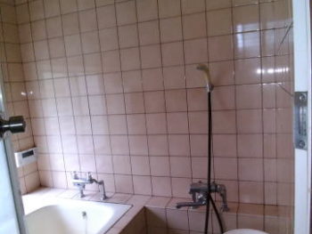 写真は、現状の浴室と洗面脱衣室です。