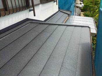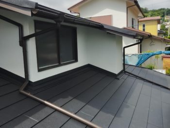 2階部分の足場撤去後 下屋根も同等金属屋根(ガルテクト)を施工・・・・!