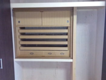 和ダンスの着物収納の衣装盆より上のみ、組込み再活用しました。