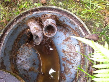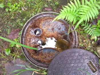 写真の通り、汚水会所に庭の草木の根っこが侵入していました。