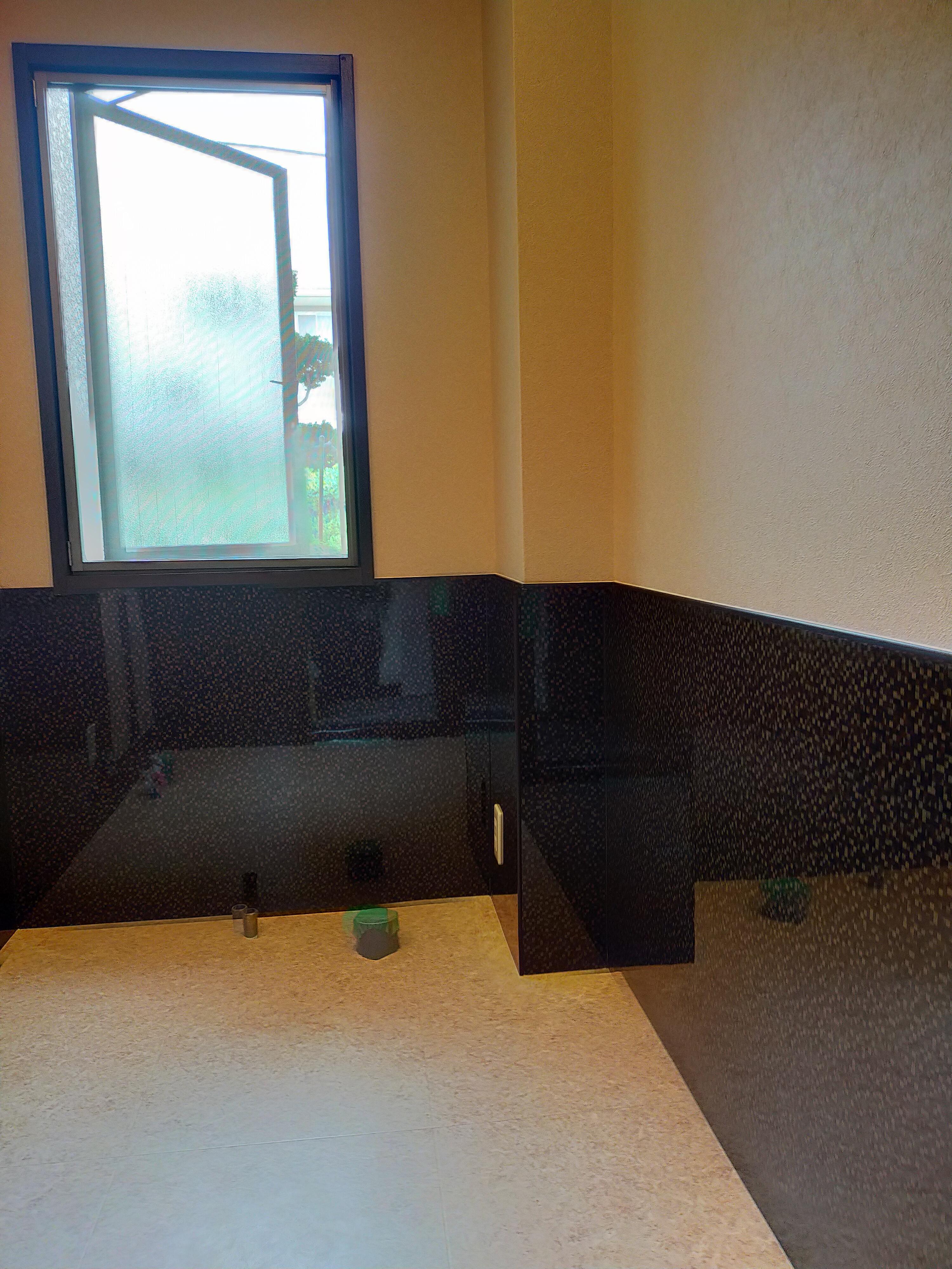お掃除もしやすく腰壁にアイカセラールパネルを施工・・・・・!