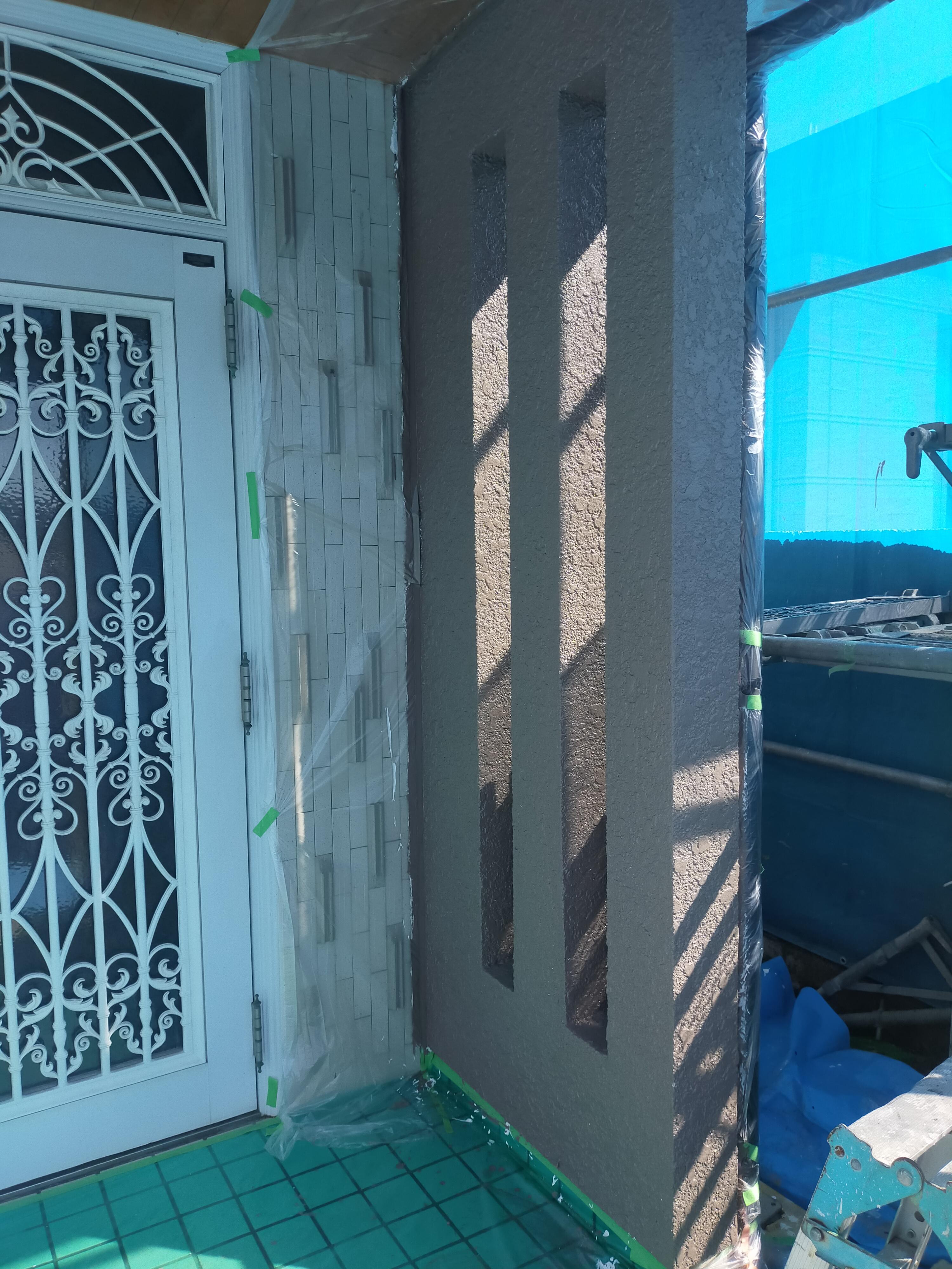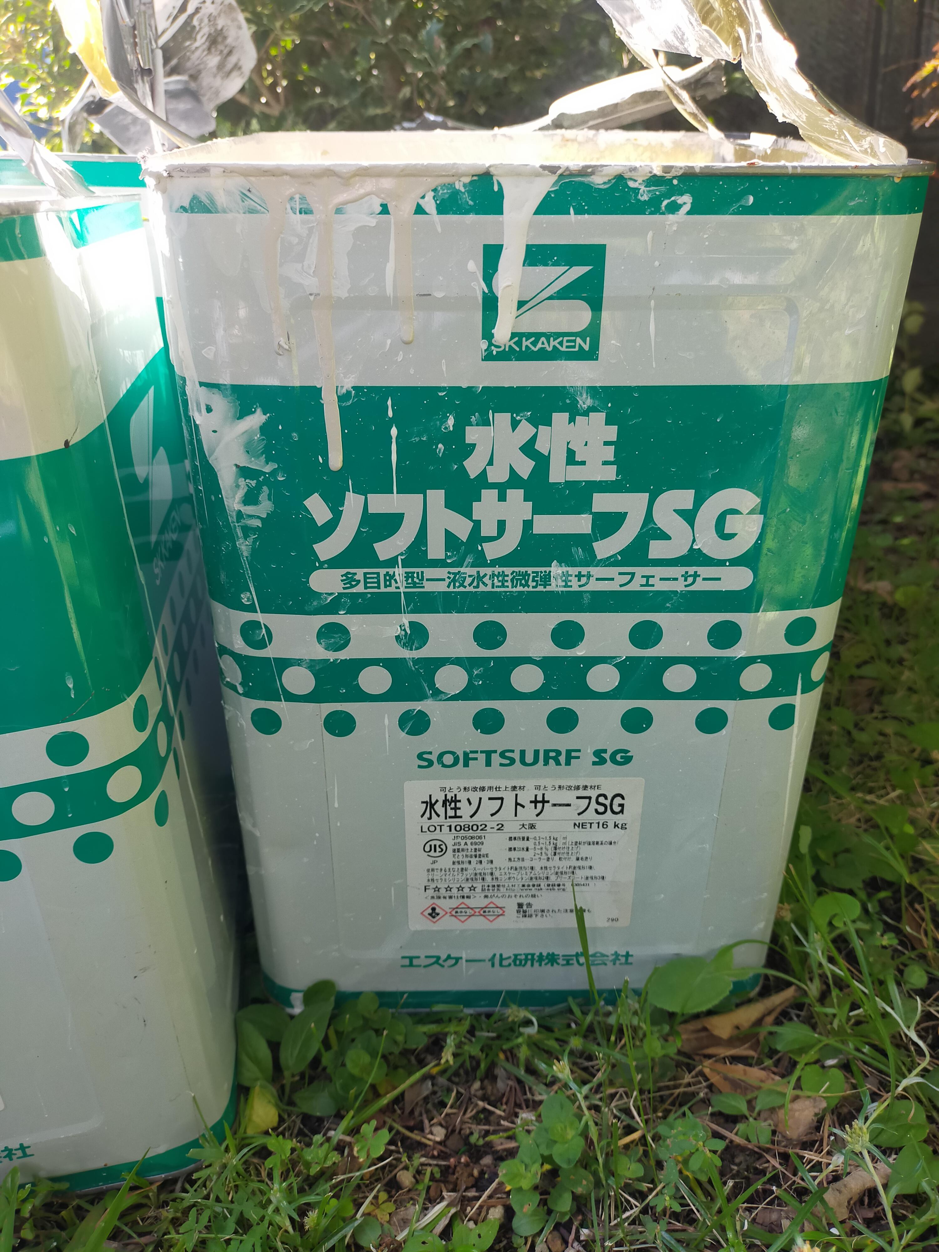 既存外壁塗料がスタッコ吹付でしたので、下地処理にソフトサーフを採用・・・!