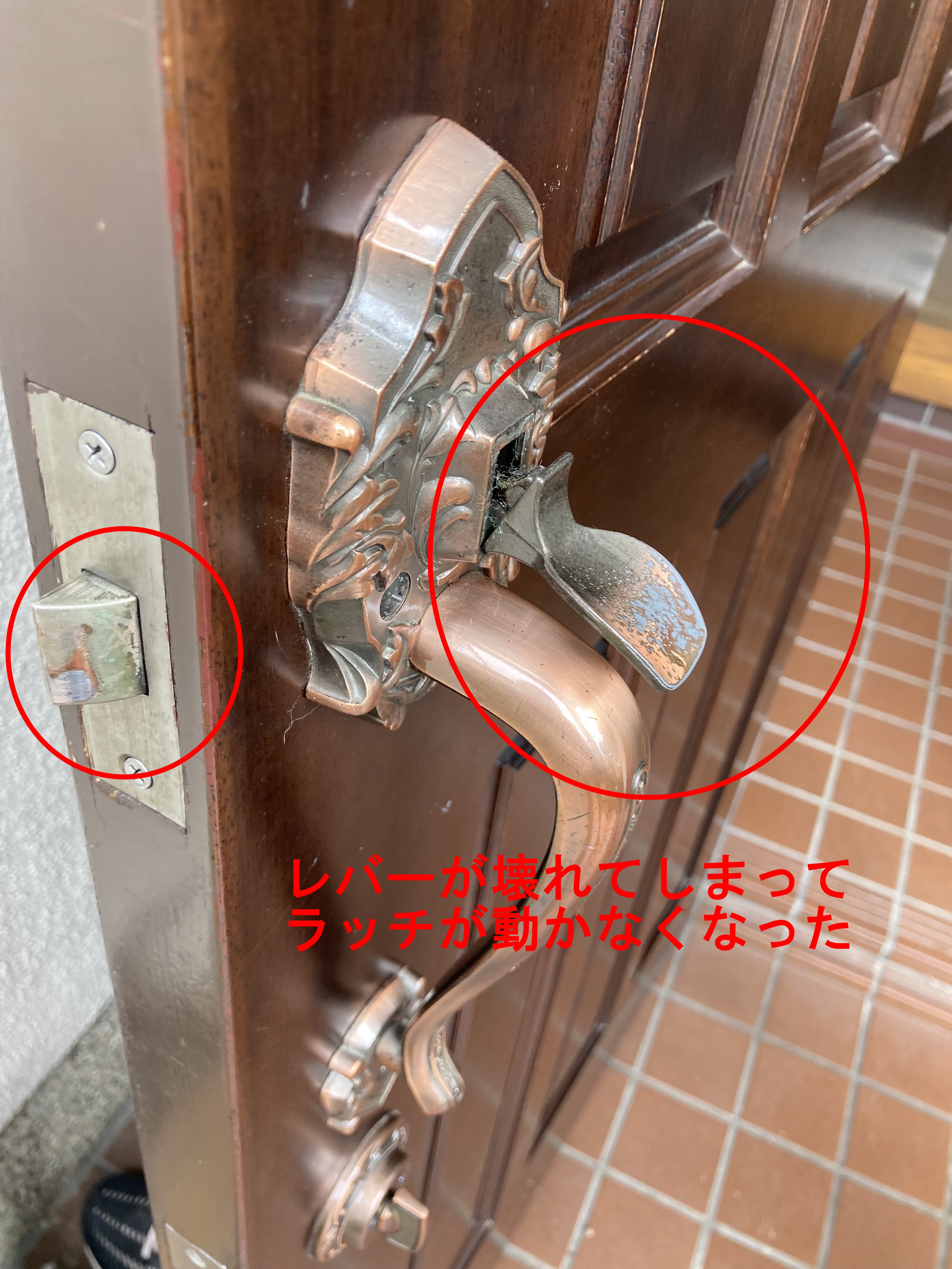 玄関の鍵が壊れたから見に来てほしいとお電話いただきました。