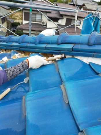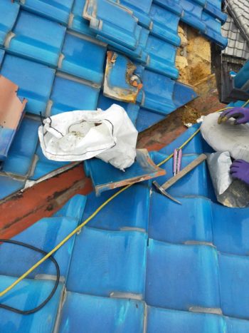 劣化した面戸漆喰を既存瓦を割らないように