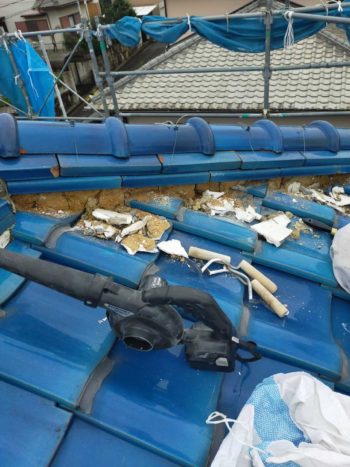 丁寧に面戸漆喰を捲って行きますその後土の補修工事も同時に進めて行きます。