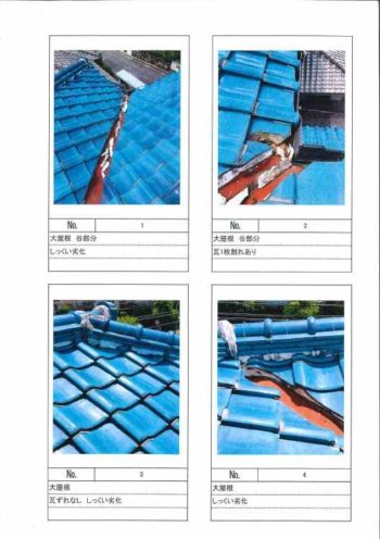 大屋根部分は瓦の割れ等がありました。