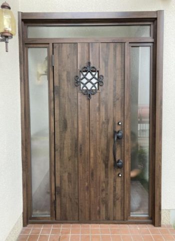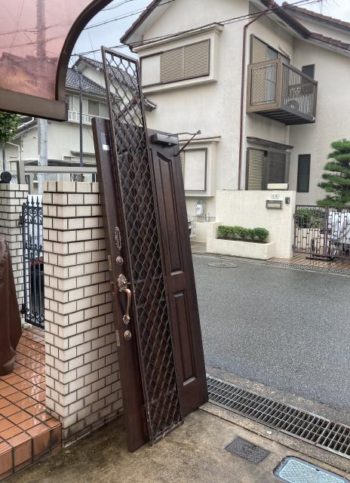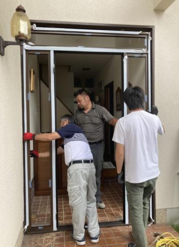 木製からアルミサッシのドアに取り替えることになりました。