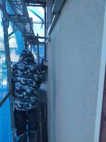 下屋の漆喰作業は先に塗装屋さんで外壁高圧洗浄工事をさせて頂きました。
